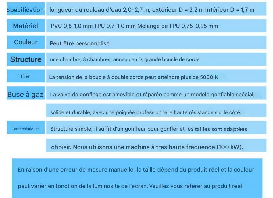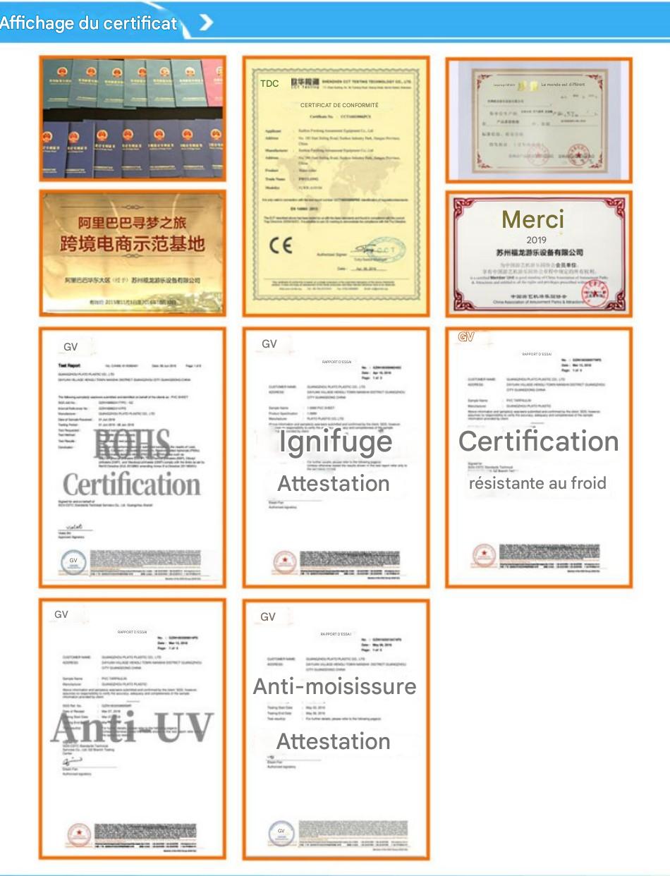 Matériau : PVC ou TPU 1,0/0,8 mm.
