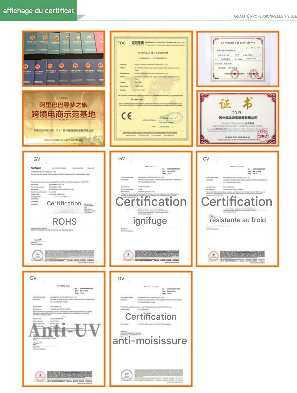 Enfants : 1,5 m de diamètre (4,9 pieds) ou 1,8 m de diamètre (5,9 pieds)
